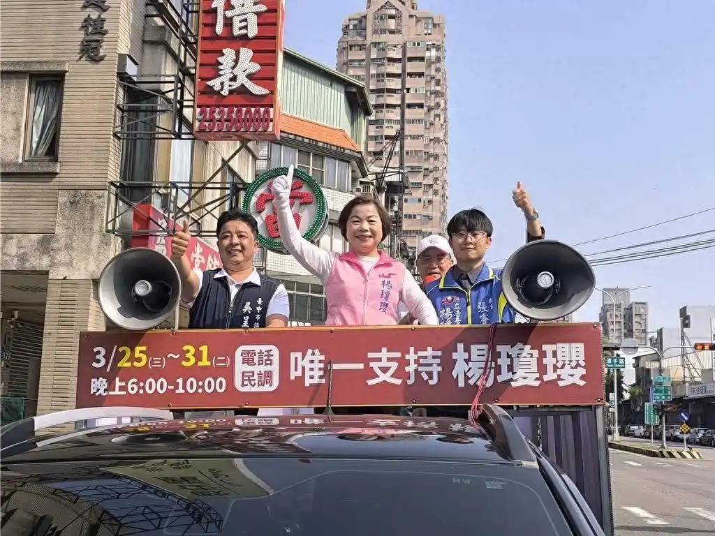 国民党台中市长人选将从3月25日到3月31日进行电话民调。杨琼璎今天展开车队扫街,由市议员吴呈贤等人陪同,从潭子区出发,将行经北屯、南区,接着走太平、大里、雾峰、乌日,再前往大肚、龙井、沙鹿、梧栖、清水等行政区。